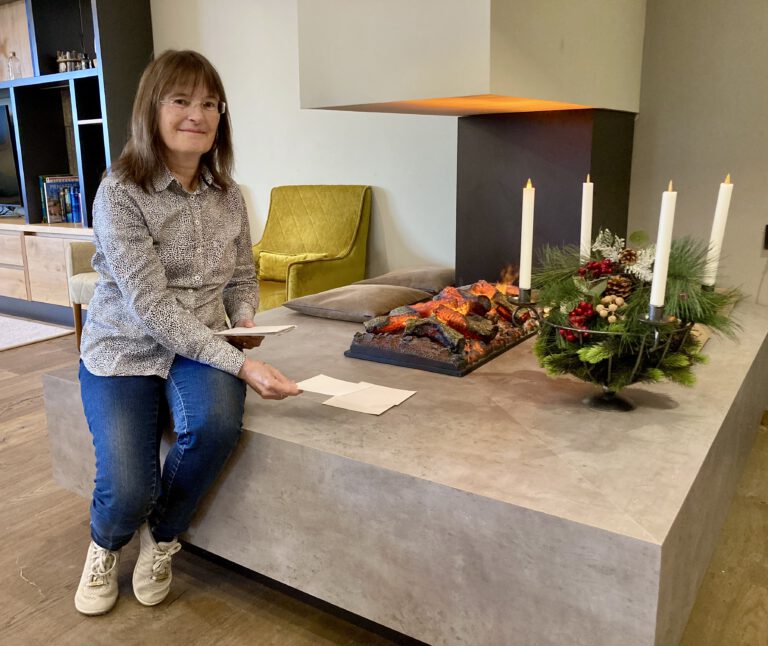 Ou en train d’écrire, sourire aux lèvres, cartes en main ?